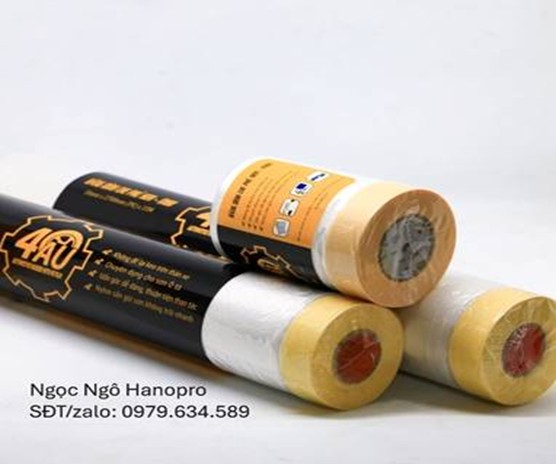 Băng dính che sơn kèm màng PE chịu được hóa chất sơn và chịu được nhiệt độ, đặc biệt là nhiệt độ trong phòng sấy lên đến 80 độ. Màng PE dùng che phủ bề mặt sản phẩm để chống bụi khi để lâu trong nhà, ngoài trời hoặc che chắn bề mặt xung quanh khỏi sơn trong quá trình phun.